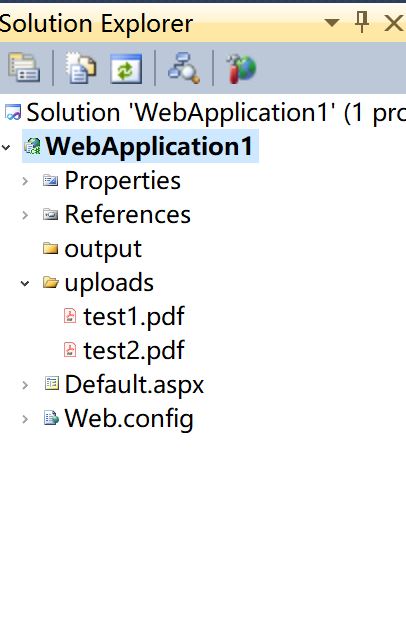 4. Select WebApplication1 in Solution Explorer, right click the mouse, select Add - New Folder, rename the folder to output and Add - New Folder again.