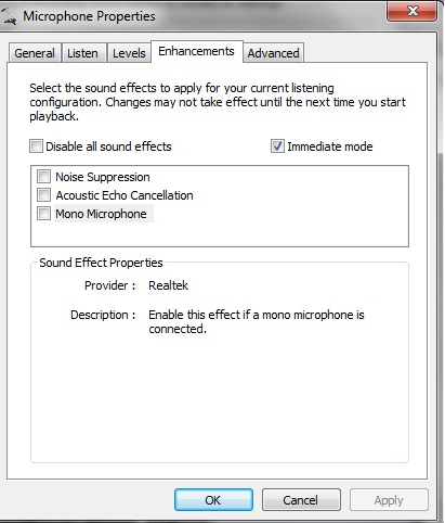 or checking your microphone in control panel whether have Enhancements tab. You should selected Disable it or Disable all sound effects.