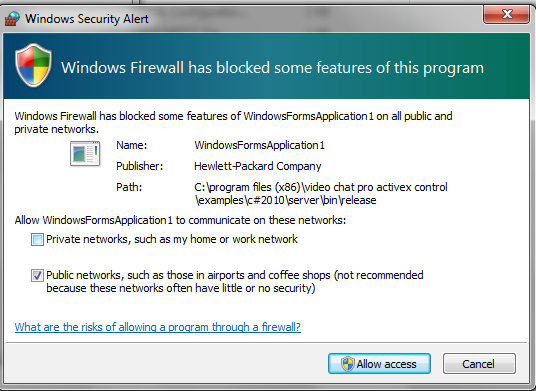Ans: We checked this issue may come window firewall , In VS2010 IDE, the window firewall will blocked, even you selected Allow access it. You must build the Server sample to exe file, then running the exe file and selected Allow access, it will work.