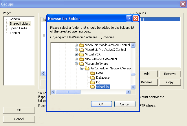 select C:\Program Files\Viscom Software\AV Scheduler Network Version ,it is FTP server home directory.
