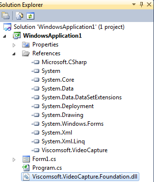 6. You will see Viscomsoft.VideoCapture.dll and Viscomsoft.VideoCapture.Foundation.dll in Solution Explorer.