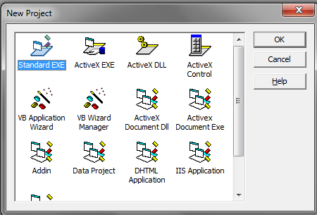 2. Launch Visual Basic 6.0. Select New Project, Select Standard EXE.