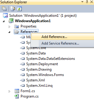 2. In the Solution Explorer, right-click References, and then click Add Reference.