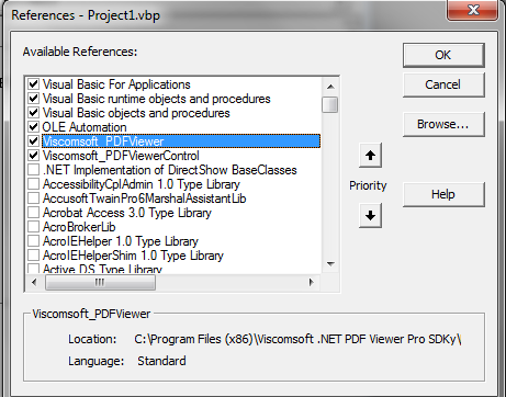 3. Select Project - References... , Select Viscomsoft_PDFViewer and Viscomsoft_PDFViewerControl