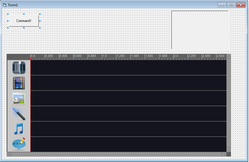 Step 1. Click on the Movie Maker Timeline Control icon and draw it on the form. A Timeline Control should appear on the form, and the Visual Basic Project window form on the right should display Movie Maker Timeline Control's properties.