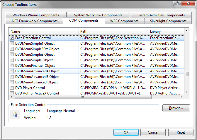 In Toolbox, Right Click mouse and Select Choose Items... , Select Face Detection Control in COM Components Tab.