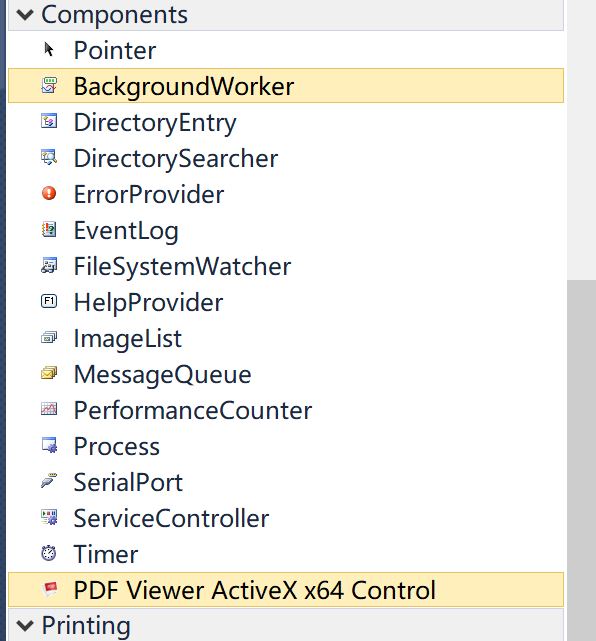 4. Now you will see the PDF Viewer ActoveX x64's icon on toolbox, drag it to form.